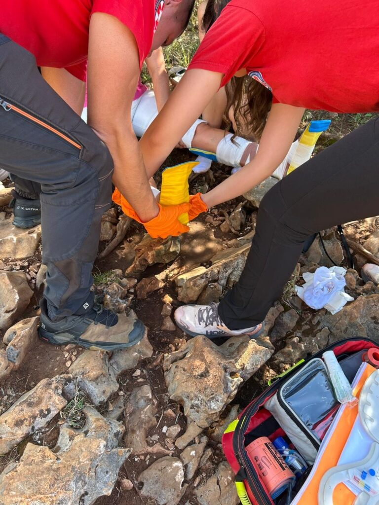 Na pola brda pomoć je zatražila ženska osoba iz Austrije koja je zadobila ozljede na obje noge. Nakon pregleda i imobilizacije, članovi HGSS-a organizirali su transport nosilima do podnožja, u čemu su im pomogli i mladići iz zajednice Cenacolo.